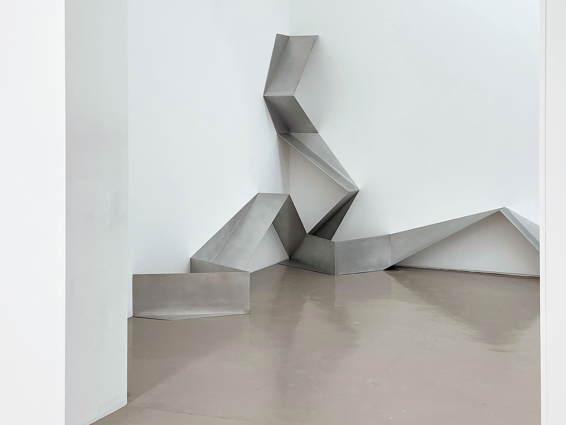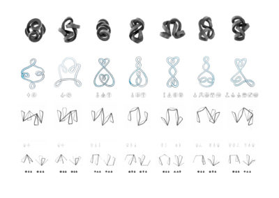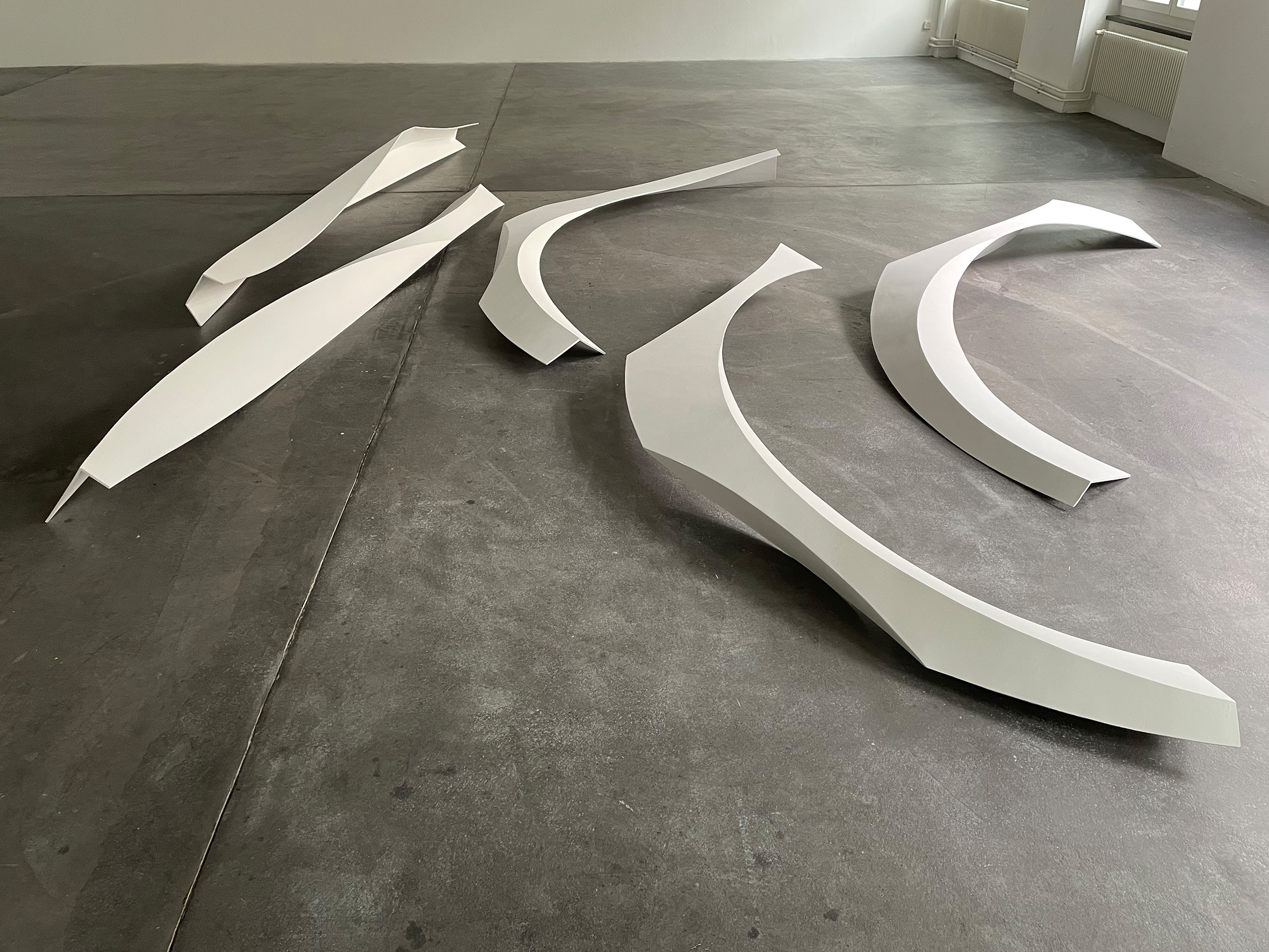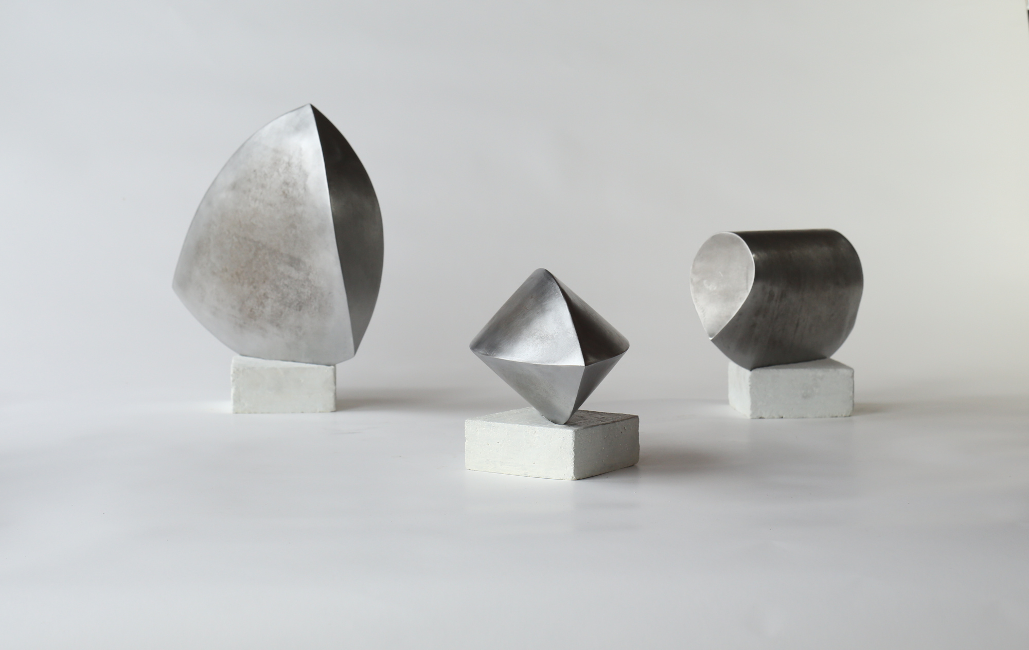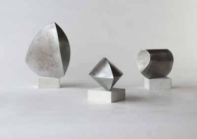 Fasziniert von der Vielfalt der möglichen Anordnungen von Linien zueinander, bin ich auf der Suche nach Ordnung des Unregelmäßigen und nach Gesetzmäßigkeiten der Ausbreitung von Form im Raum. Die Erweiterung der Grundformen von Kreis, Dreieck und Quadrat um Eineck und Zweieck machte organisch-geometrische Körper möglich und führte zu neuen Strukturprinzipien. Aus Stahl geschweißt kann ich diese „Polyliner“ als filigrane Raum-Zeichnungen realisieren und ihre gewölbten Flächen entlang präziser Kanten zu geschlossenen Körpern verschmelzen. In Reihungen und deren topologischen Transformationen entsteht ein grundlegendes Vokabular radikal vereinfachter Notationen, das Ordnungskriterien beinhaltet für ein künftiges Periodensystem der Formen.