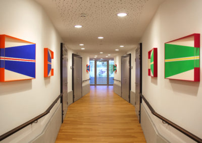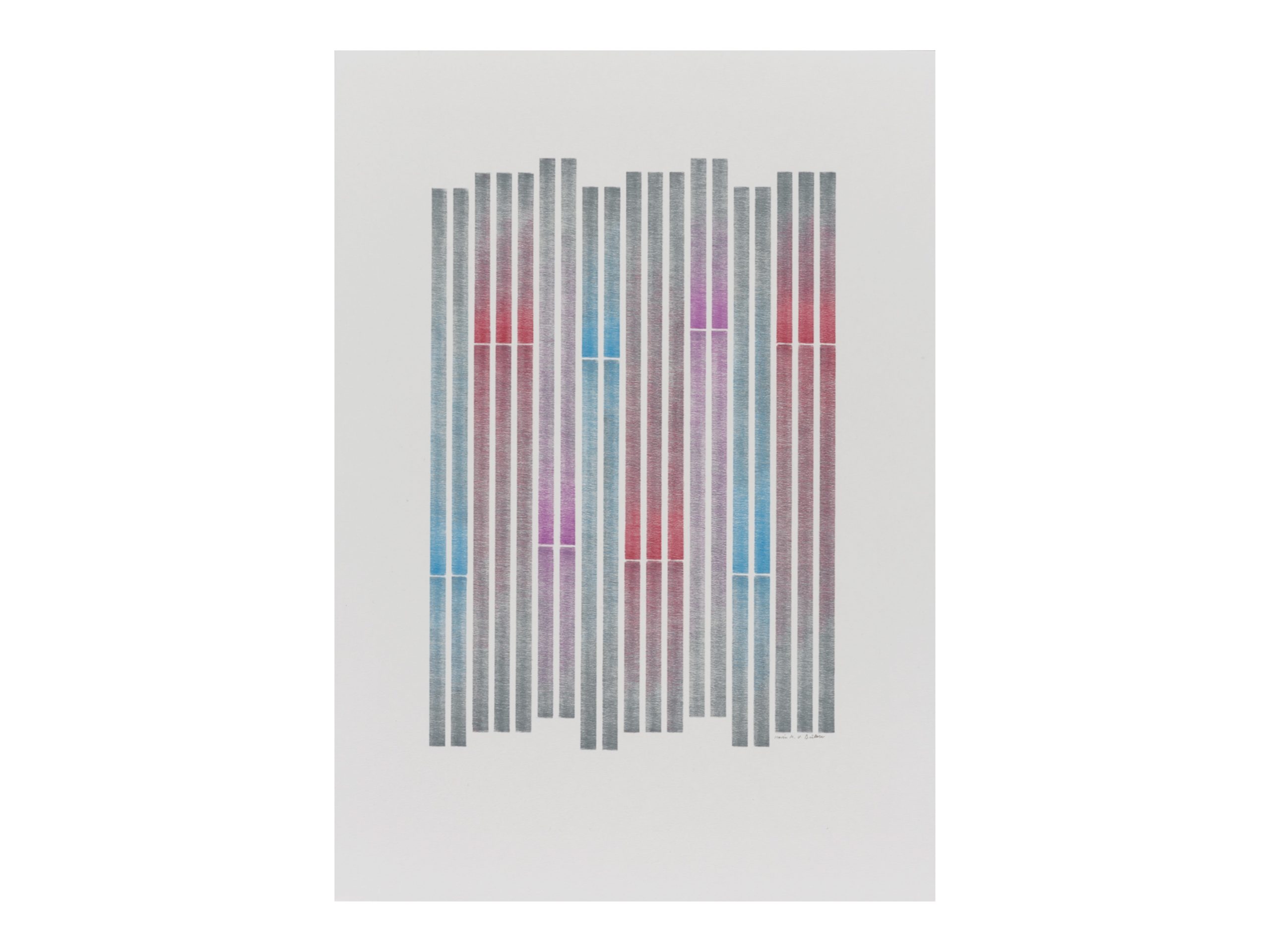 Meine Arbeit basiert auf geometrischen Grundstrukturen wie Moduln, Linien und Rastern. Die meisten modularen Kompositionen sind geometrische Abstraktionen mit Ursprung in der Natur oder in der technologischen Welt, deren Herkunft im fertigen Werk jedoch nicht mehr erkennbar ist. Die konstruktiven Arbeiten entstehen aus regelbasierten Systemen und Ordnungsmustern mit wiederkehrenden Elementen, die präzise gesetzt sind, in ihrer Wirkung jedoch offen bleiben. Zur Rhythmisierung der Bildstruktur nutze ich Zahlenreihen wie die Fibonacci-Folge, Langford-Sequenzen oder gleichmässige Kadenzen. Farbe setze ich strukturell ein – zur Erzeugung optischer Spannungen und zur Steuerung der räumlichen Wahrnehmung. Im Zentrum steht eine visuelle Sprache, die aus Reduktion, Wiederholung und systematischer Variation entsteht.